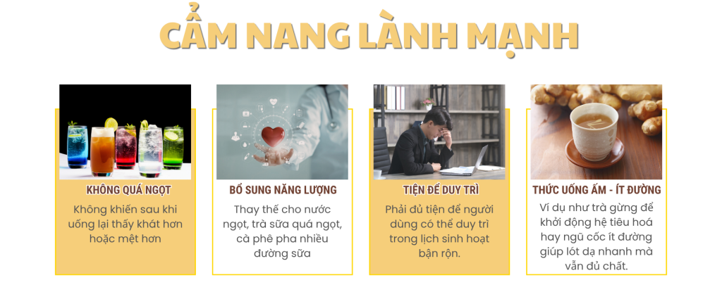 - Thứ nhất, nó không tạo cảm giác quá tải cho cơ thể, nghĩa là không quá ngọt, không khiến sau khi uống lại thấy khát hơn hoặc mệt hơn.